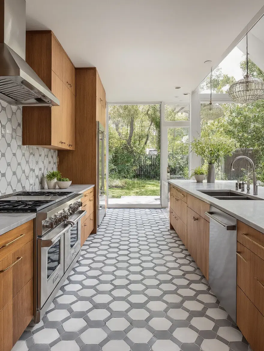 modern geometric tile layout in kitchen