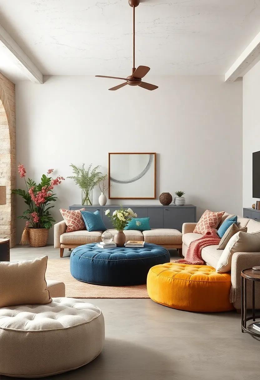 Comfortable Ottoman Poufs: Add extra seating or a footrest with plush poufs that invite people to relax and gather