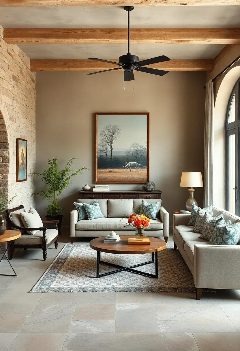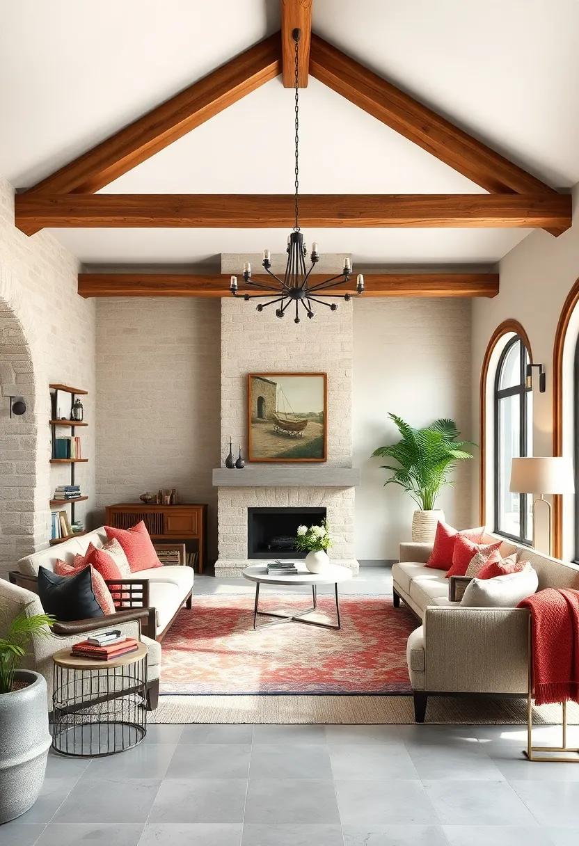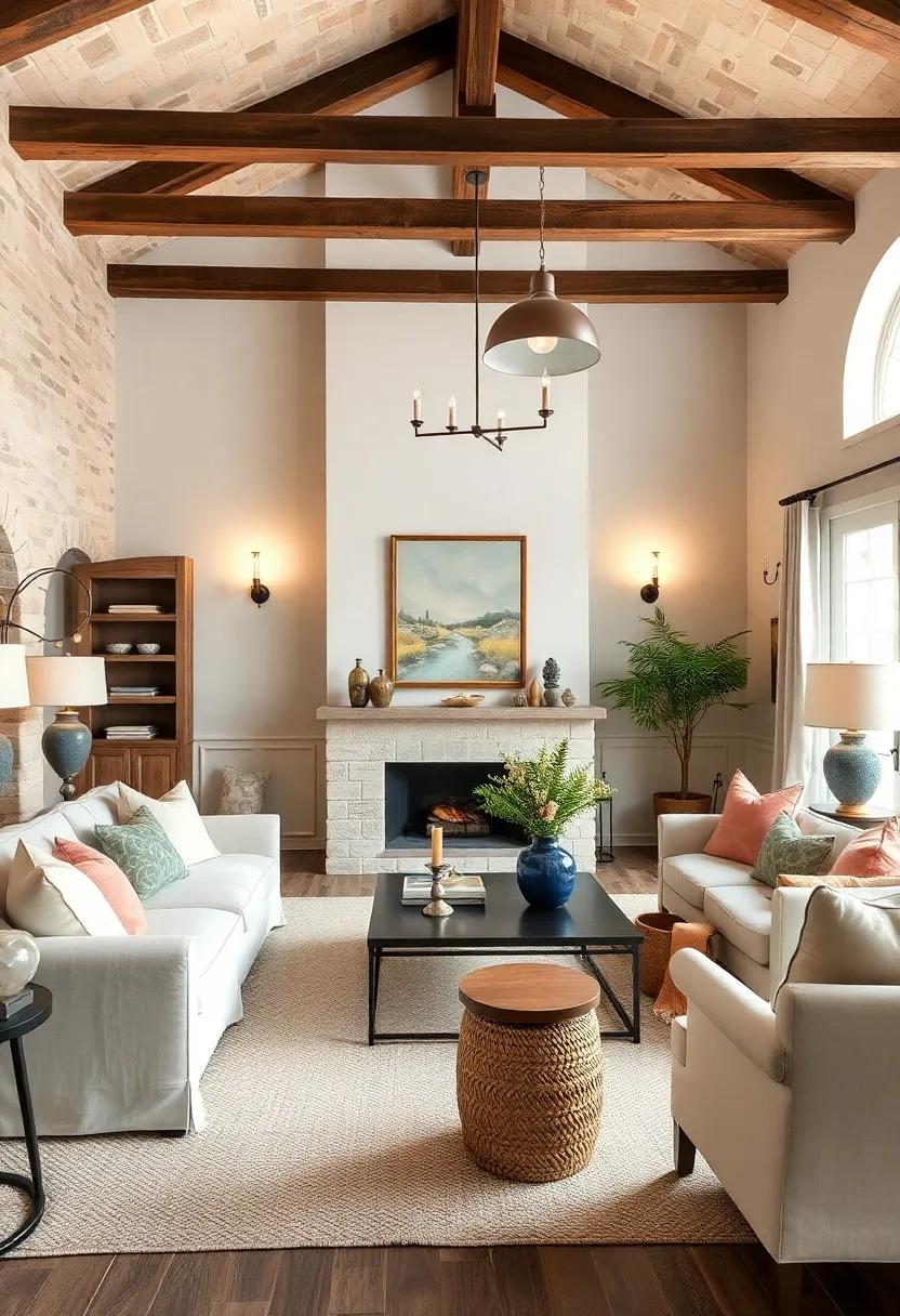 exposed Beams: Highlight the architecture of your living room with visible wooden beams, adding both height and rustic character