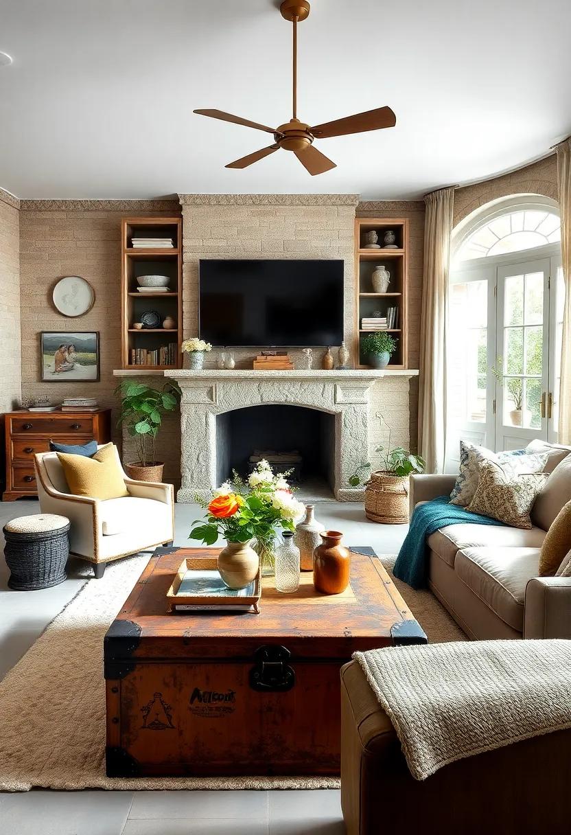 Vintage Trunks for Storage: Use antique trunks as unique coffee tables, adding a practical twist along with nostalgic storytelling