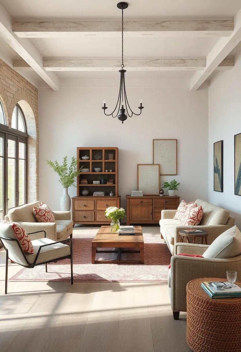 Exposed beams are the epitome of rustic charm, breathing life into the architecture of your living room. By allowing the natural beauty of wood to take center stage, these beams not only increase the visual height of the space but also create a warm and inviting atmosphere.Imagine rich oak or pine beams stretching across your ceiling, contrasting beautifully with the soft colors typical of French country decor. The play of light on the wood grain adds depth and texture, enhancing the overall aesthetic of your home. Consider pairing these beams with: