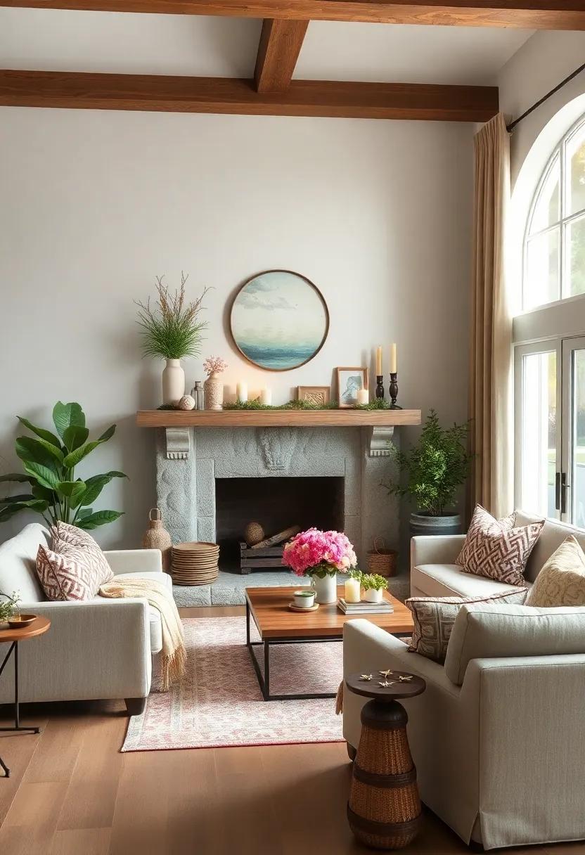 Consider integrating a cohesive color palette that complements your living room’s decor, using soft whites, gentle greens, and warm browns to echo the charm of countryside living. An enjoyable approach is to use a humble wooden tray to corral smaller items, keeping the display organized yet casual.Additionally, adding textured fabrics such as a cozy knit or patterned runner will introduce depth and warmth. To round off your charming mantel display, you might consider showcasing a collection of unique decorative objects, like ceramic vases or antique books, layered in a visually pleasing manner to tell a story that resonates with those who admire your inviting space.