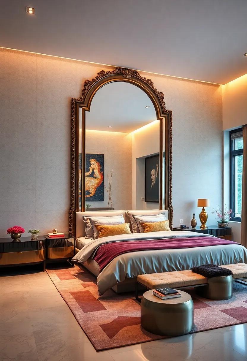 Another innovative way to use mirrors is to integrate them into your furniture. A dresser with a mirrored front or a bedside table with reflective surfaces not only serves a functional purpose but also acts as a decorative element that enhances luxury. When choosing mirrors, look for ornate frames that add character or sleek, frameless designs for a minimalist approach. Keep these tips in mind: