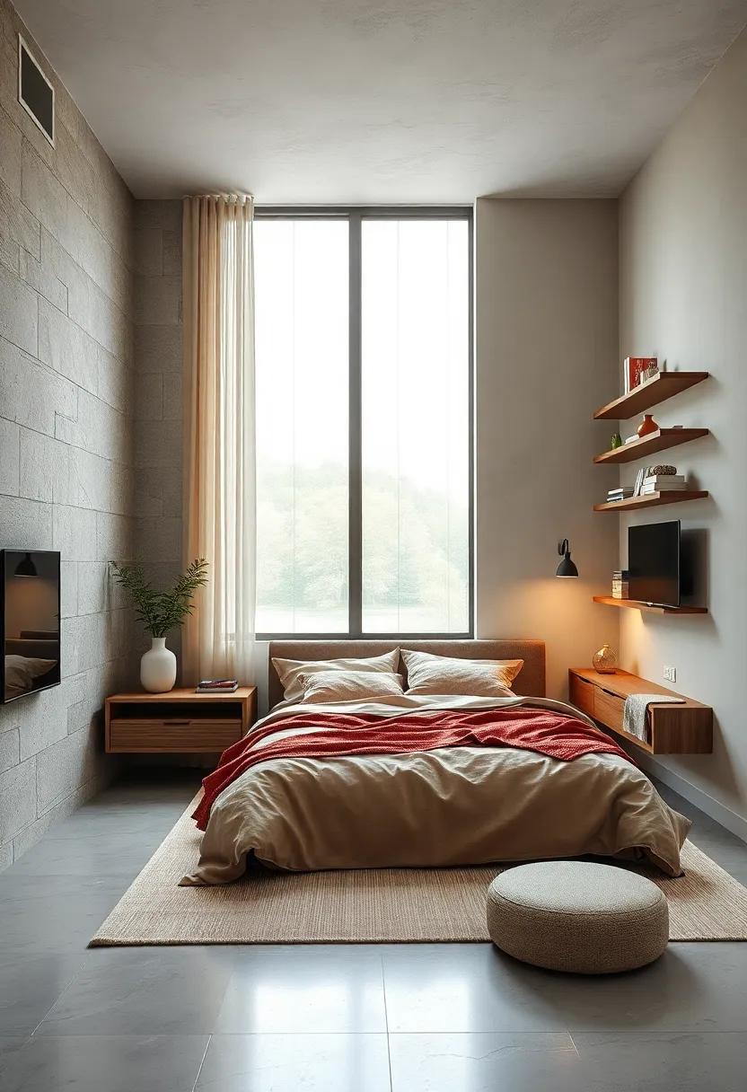 Wall-Mounted Nightstands: Opt for sleek wall-mounted nightstands to save floor space and maintain a minimalist aesthetic