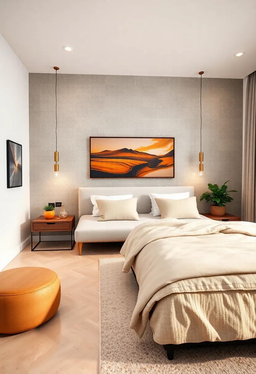 | Paintings | Abstract, landscapes, or portraits | Above the bed or dresser |