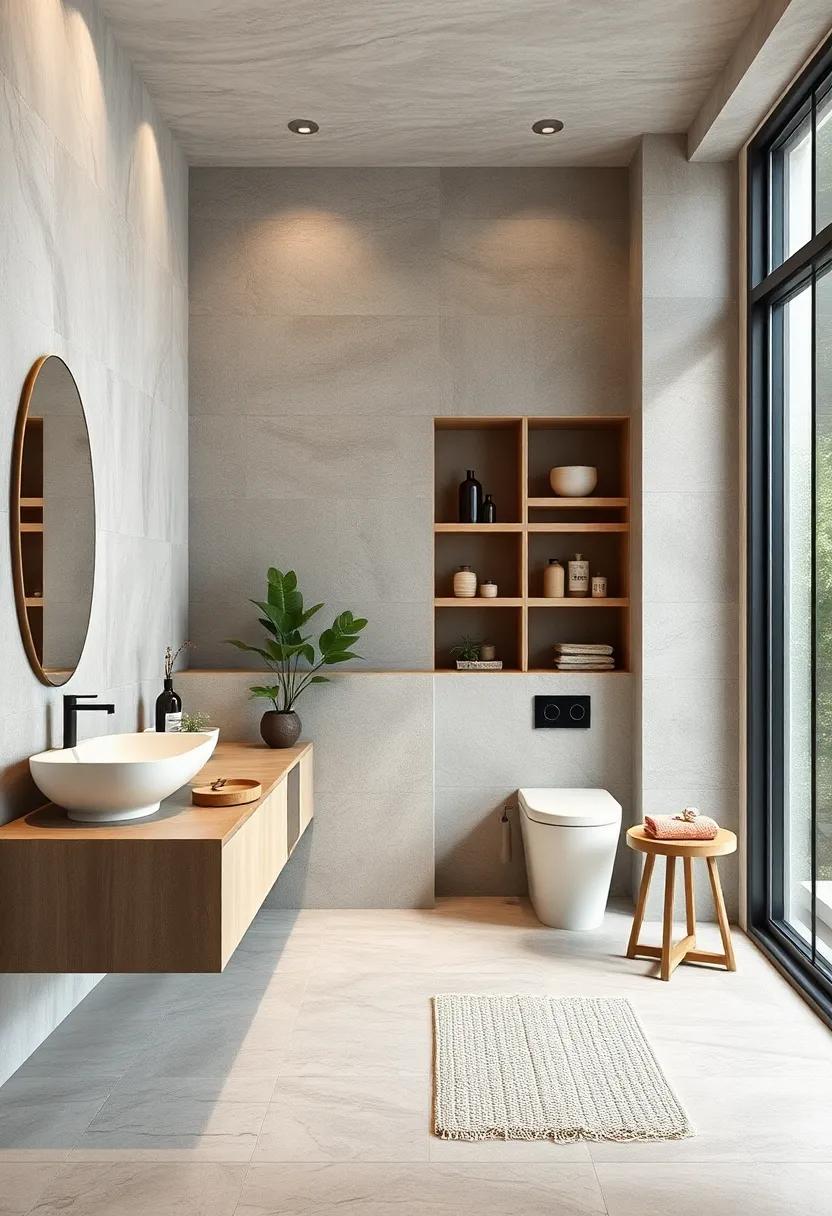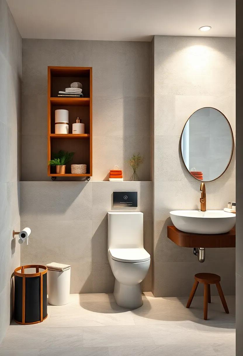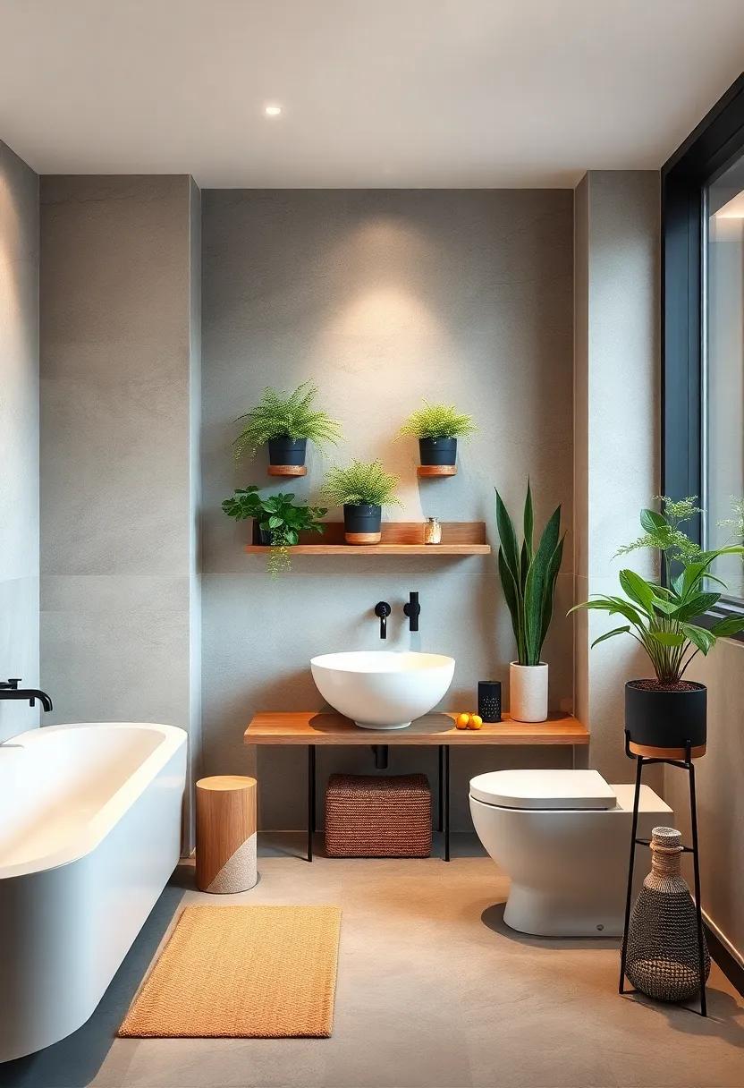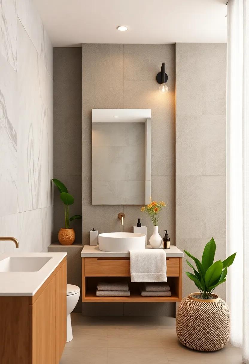 Infusing your bathroom with nature-inspired elements can turn a simple space into a tranquil retreat. Consider using bamboo, cork, or reclaimed wood for cabinetry and countertops to create a harmonious atmosphere. These materials not only provide an earthy aesthetic but also promote sustainability. Pair these natural finishes with strategically designed hidden storage solutions that keep your space tidy. For instance, cabinetry that extends from floor to ceiling can conceal essential items like toiletries and towels, all while maintaining an uncluttered look.