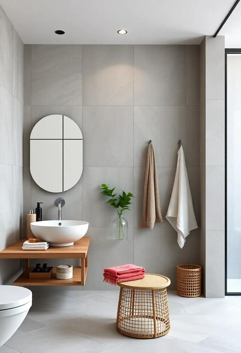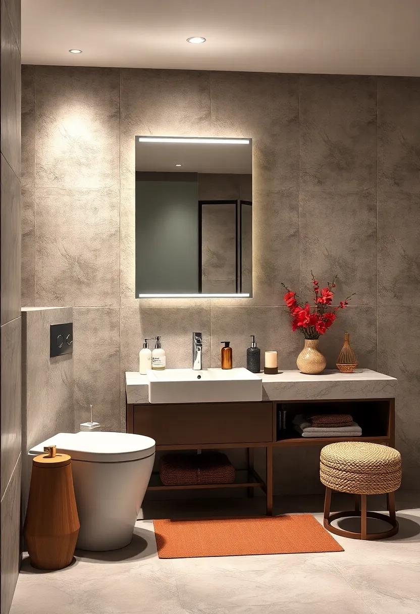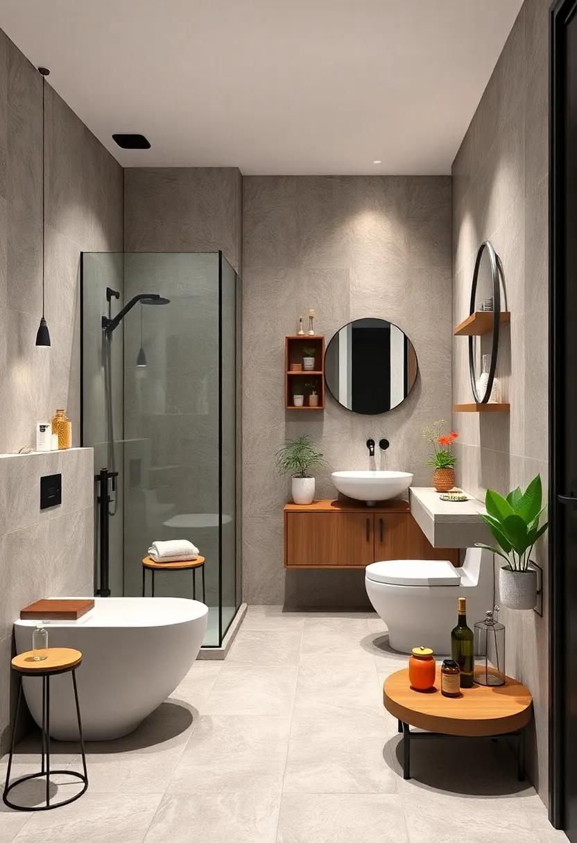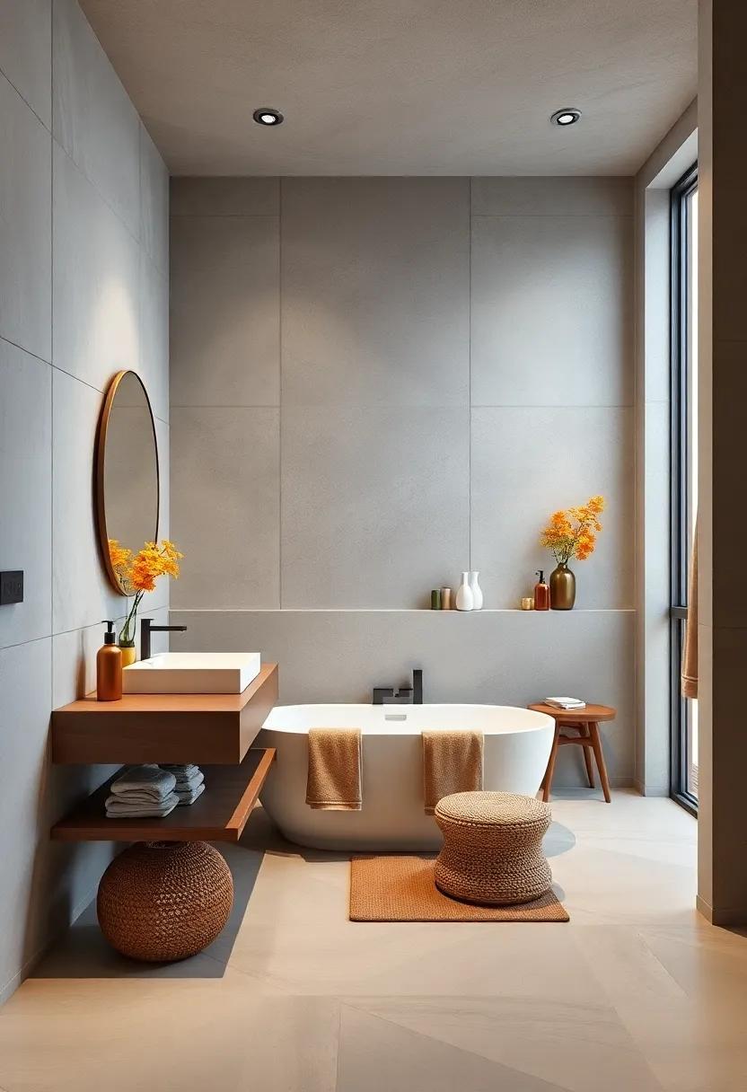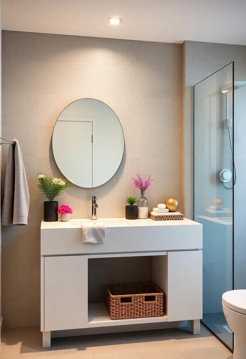 Infusing your bathroom with nature-inspired elements can turn a simple space into a tranquil retreat. Consider using bamboo, cork, or reclaimed wood for cabinetry and countertops to create a harmonious atmosphere. These materials not only provide an earthy aesthetic but also promote sustainability. Pair these natural finishes with strategically designed hidden storage solutions that keep your space tidy. For instance, cabinetry that extends from floor to ceiling can conceal essential items like toiletries and towels, all while maintaining an uncluttered look.
