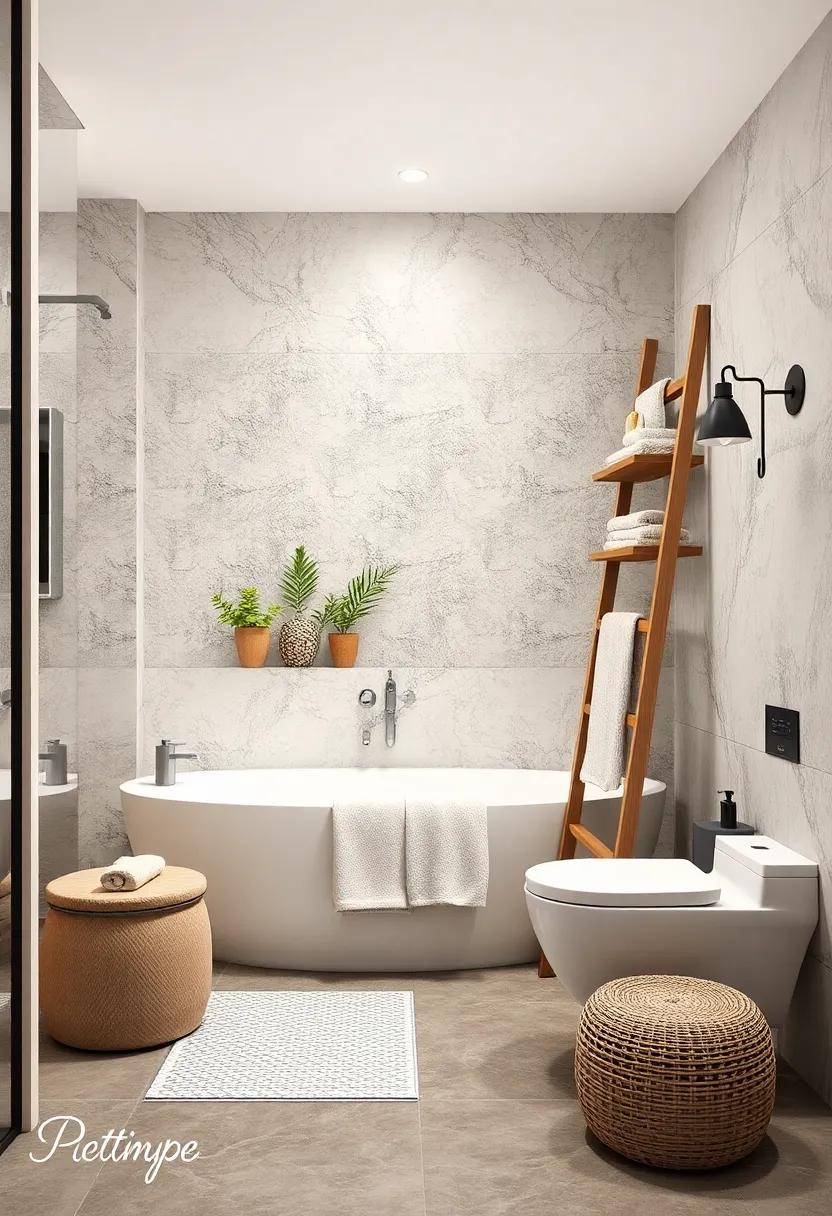 Transform your bathroom into a stylish sanctuary by incorporating a bathroom ladder—an elegant piece that marries form and function. Functionality is its forte; the ladder can be utilized to hang towels, ensuring they are always within arm’s reach while adding a touch of rustic charm. You can choose from a variety of materials like reclaimed wood, metal, or sleek bamboo, allowing it to fit seamlessly into any modern decor scheme. Hang fluffy, neatly rolled towels for a spa-like aesthetic, or drape textured fabrics in an artistic manner to create an eye-catching focal point.