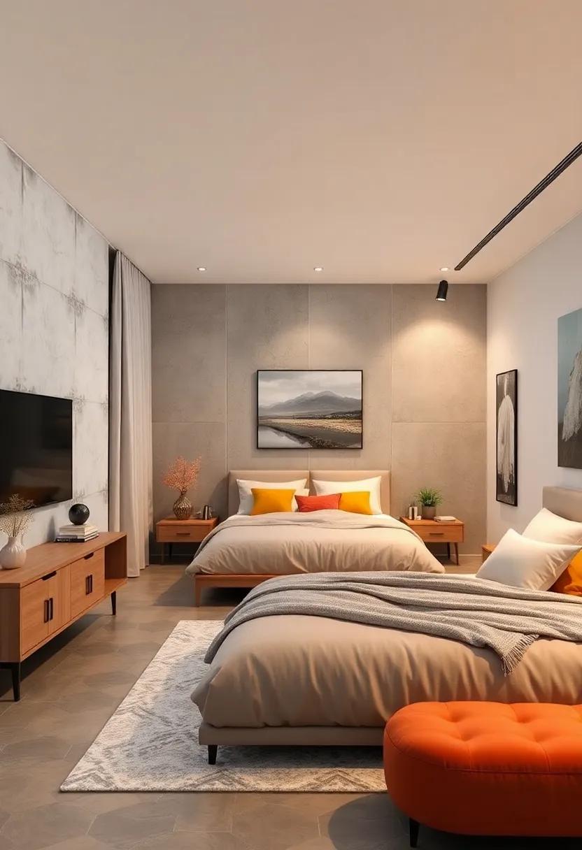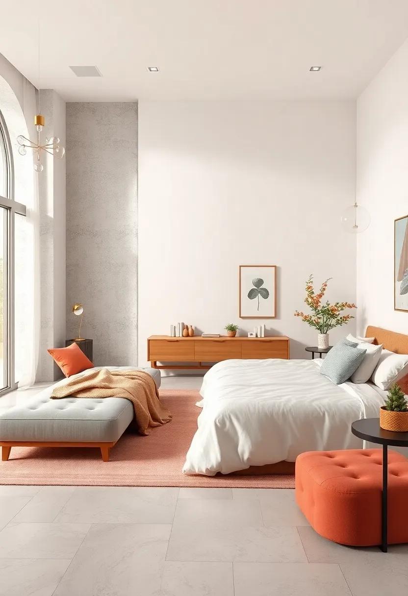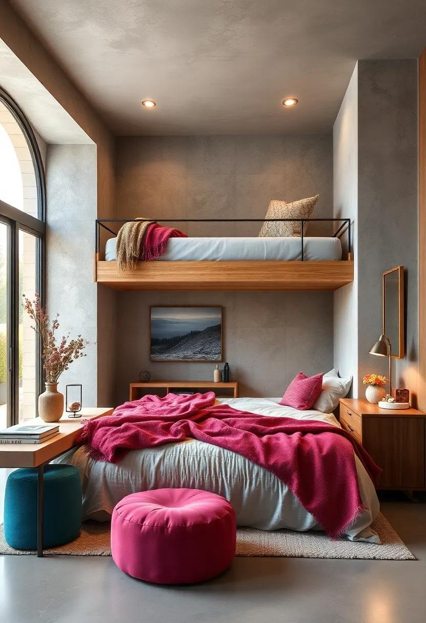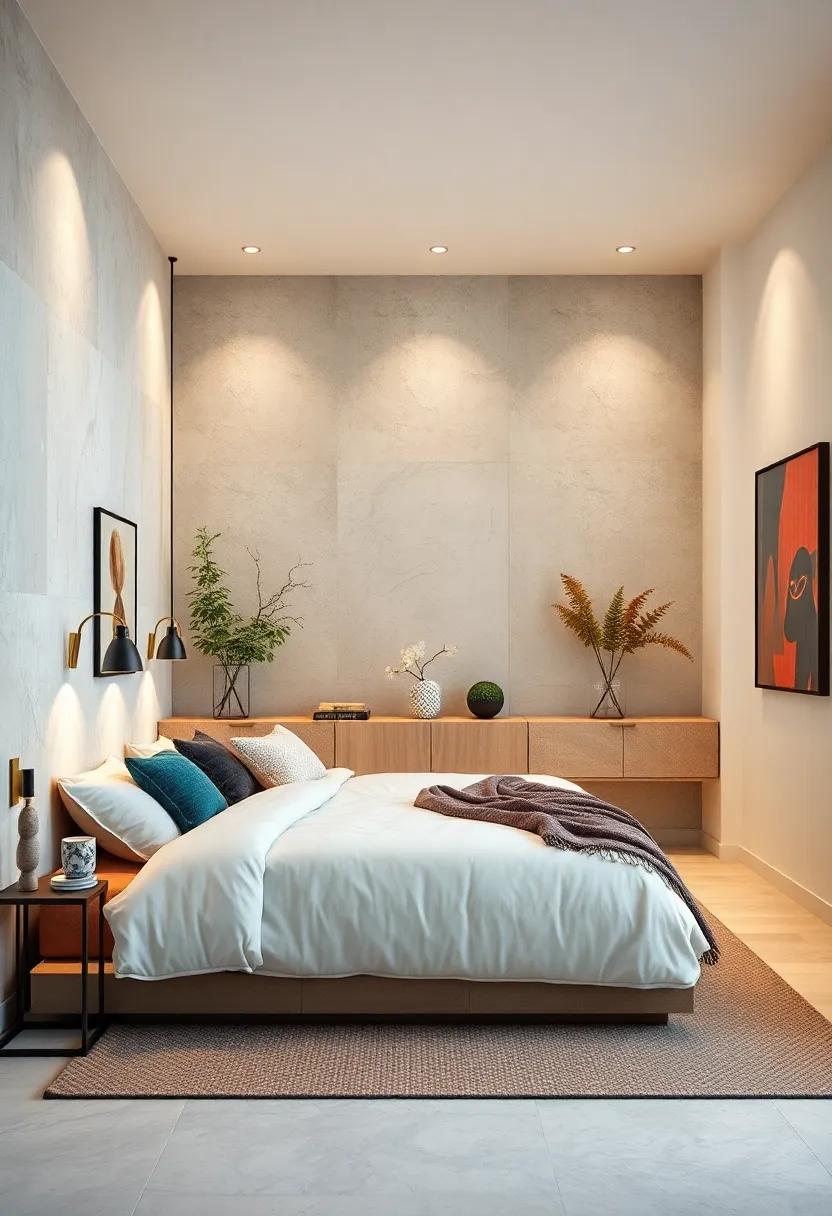 - Floating Bed Arrangement: Position your bed away from walls to create a central focal point, adding nightstands and decorative lighting for balance.