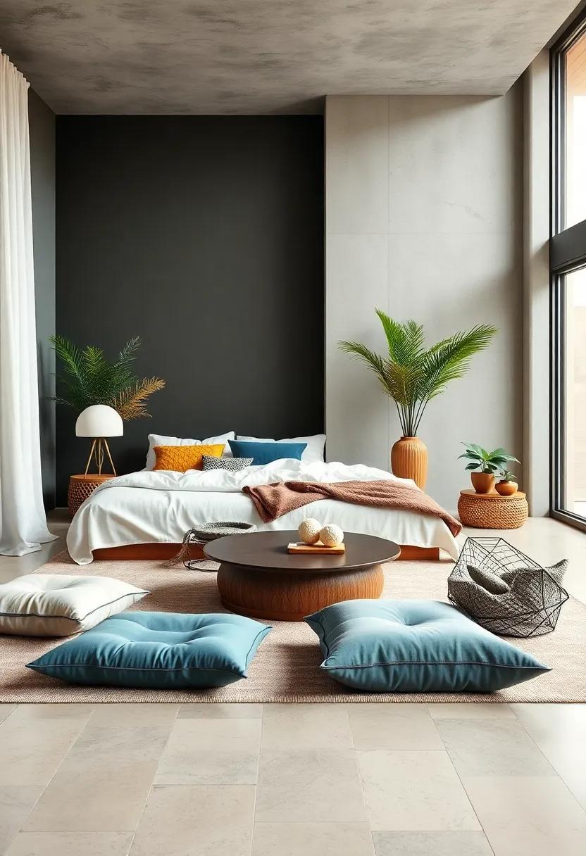 Incorporating plush floor cushions into your bedroom can transform your space into a cozy retreat while enhancing its casual decor. Versatile and portable, these cushions are perfect for accommodating guests or simply for lounging with a good book. You can easily arrange them in a corner, scatter them around a low table, or create a playful reading nook. Choose from various colors and patterns to infuse a bohemian vibe that reflects your personal style. Mixing textures and sizes can also add visual interest; think about combining large round cushions with smaller, square ones for a dynamic look.