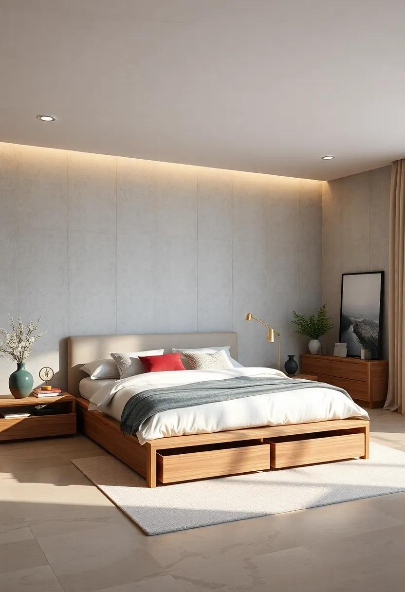 Platform Beds with Storage Drawers: opt for a platform bed with built-in drawers, combining style with practicality to keep your bedroom organized