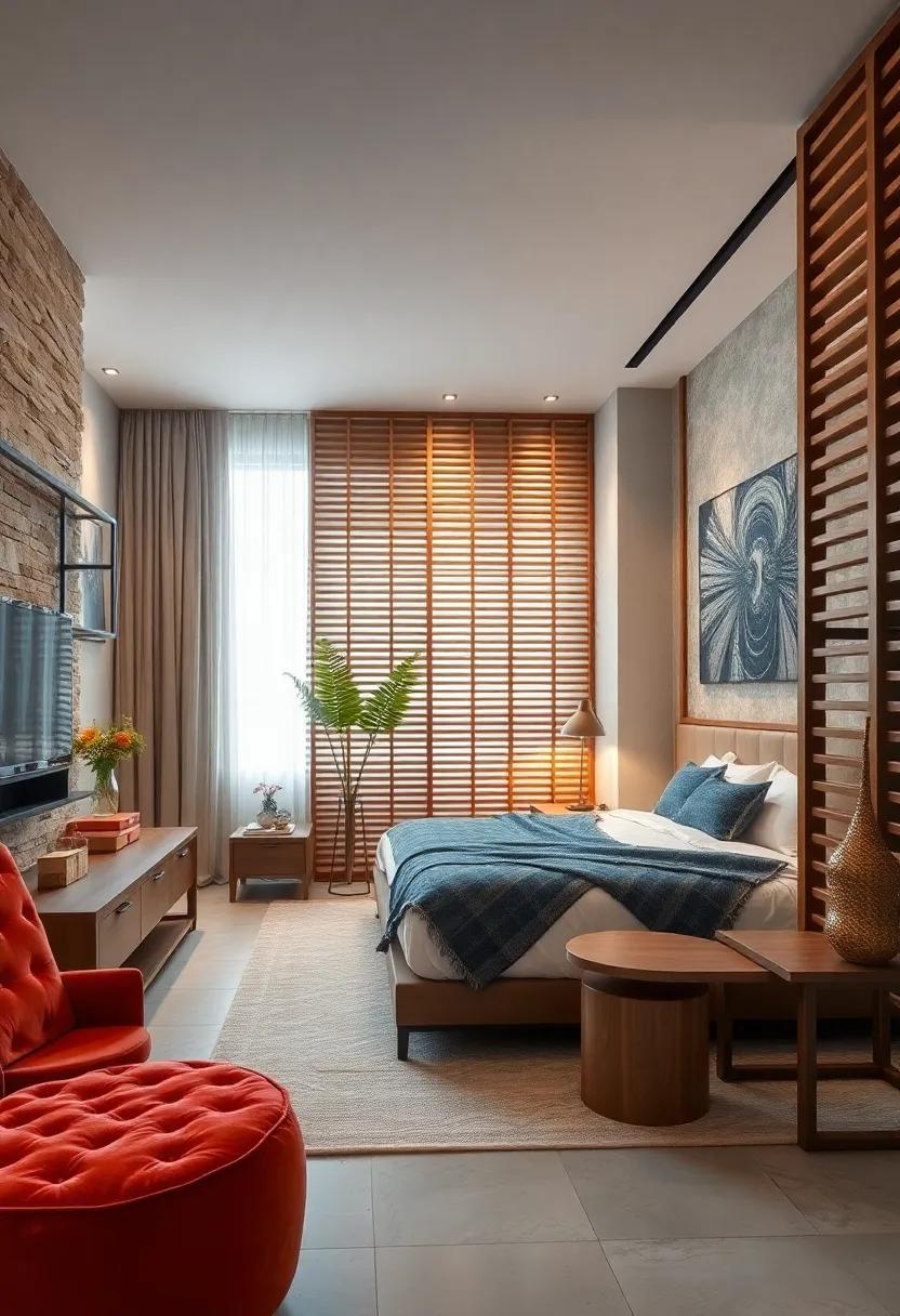 Transform your bedroom into a versatile sanctuary by using curtains as room dividers. This flexible approach allows you to carve out intimate spaces without the need for permanent walls, ensuring your sanctuary feels open and airy. Consider installing a ceiling-mounted curtain track to hang lightweight, sheer drapes that gently diffuse light while still providing a sense of privacy. Light fabrics such as linen or cotton can enhance this effect, making your sleeping area feel cozy yet expansive. Additionally, choosing colors that complement your overall decor can help tie the room together seamlessly.