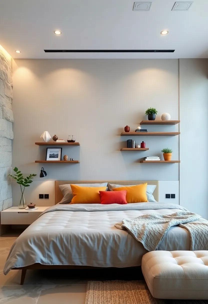 Stylish Wall-Mounted Shelves: Install wall-mounted shelves to display decorative items while providing extra storage without occupying floor space