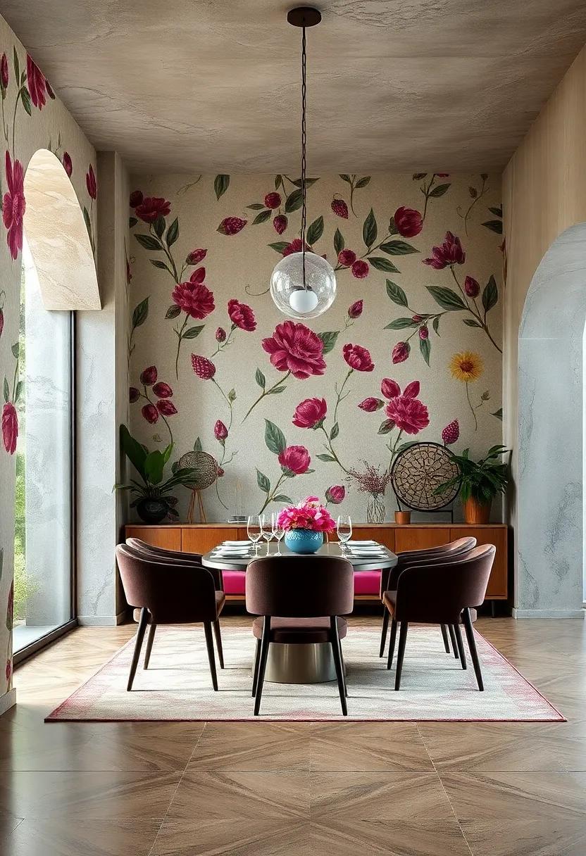 - Bold Botanicals: Embrace dramatic colors and intricate details to turn a feature wall into the focal point of the room.