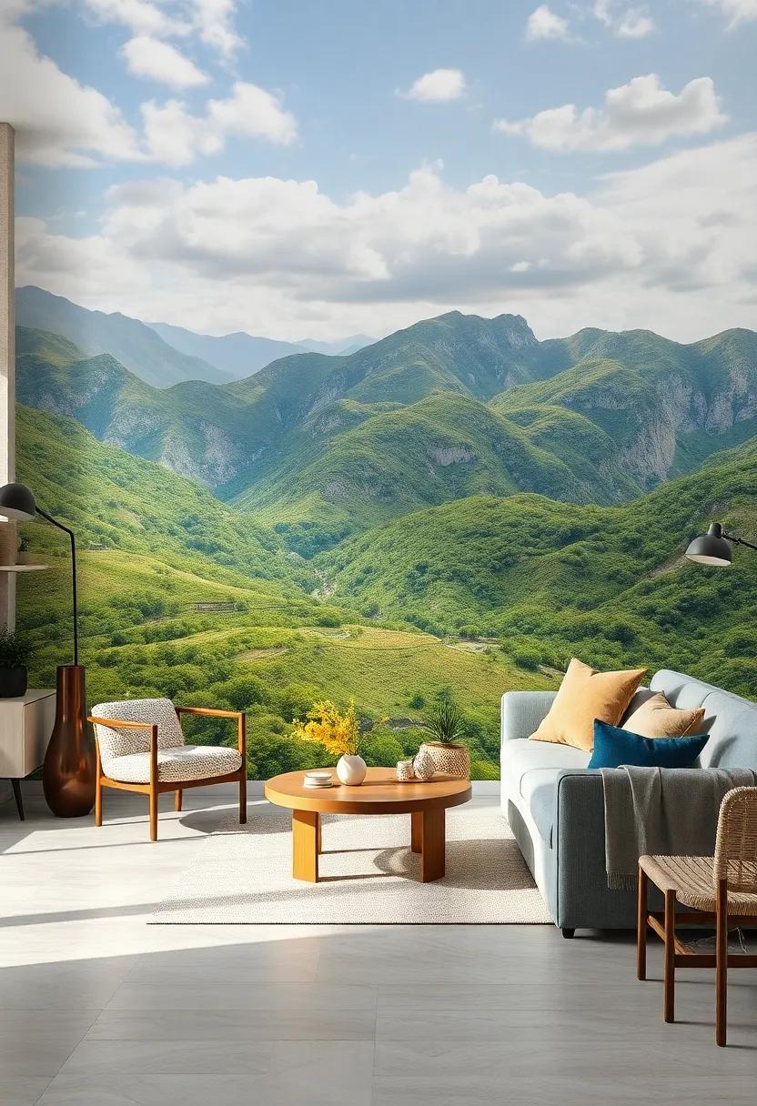 Mountain Majesty: Elevate your interior with wallpaper featuring majestic mountain ranges, perfect for inspiring adventure