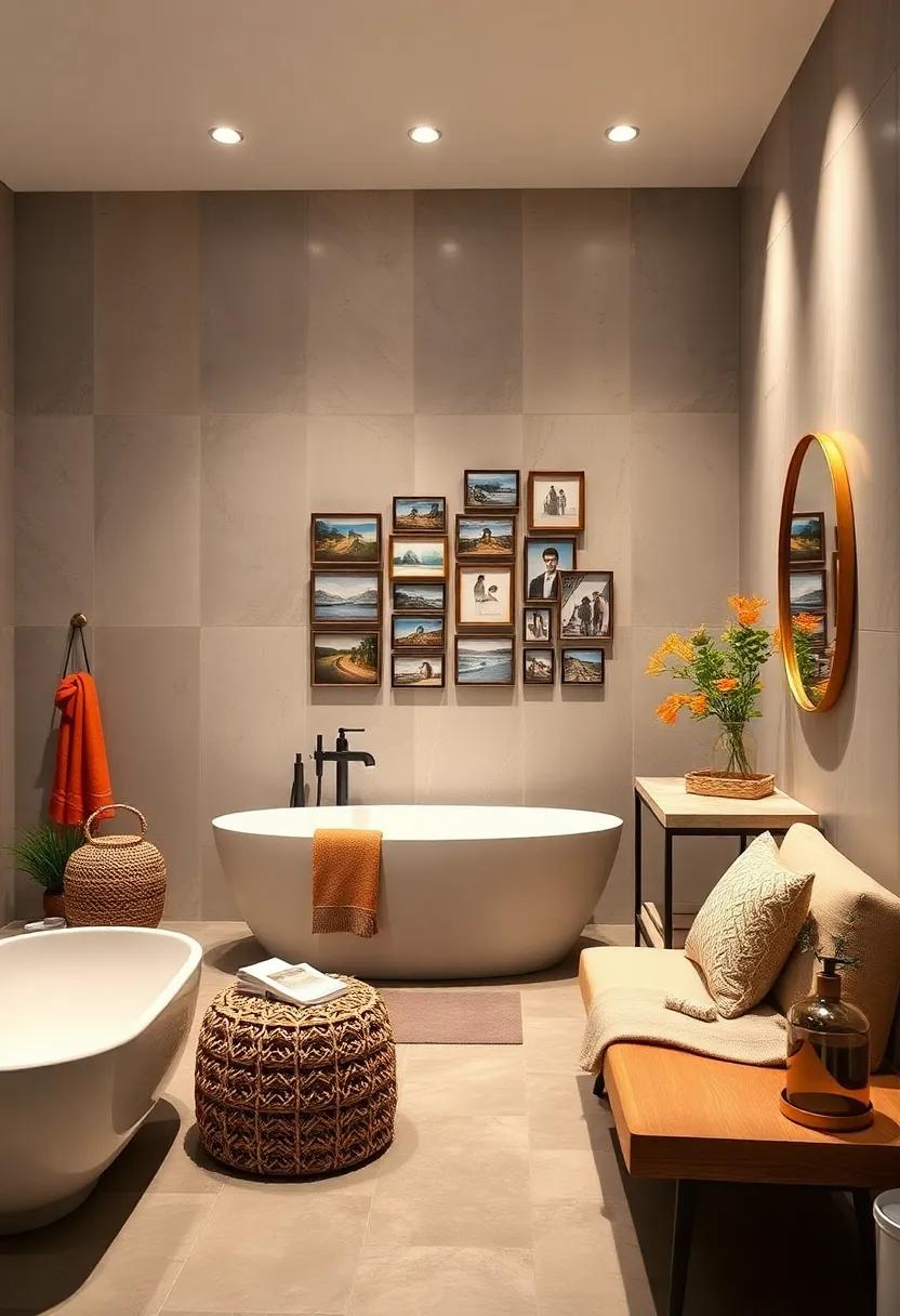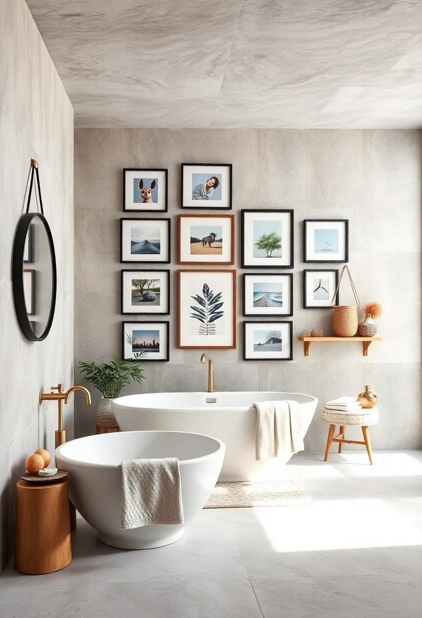 To add an interactive element, think about creating a photo wall that allows for easy updates. Use clipboards or mini clotheslines to hang photos, making it simple to swap images whenever you want a fresh look. Another creative approach involves utilizing an old wooden pallet or a corkboard that can serve as the foundation for a changing display. For a polished finish, organize your photos in a way that tells a story, blending different sizes and orientations. not only will these collages personalize your bathroom, but they will also become a warm conversation starter for guests!