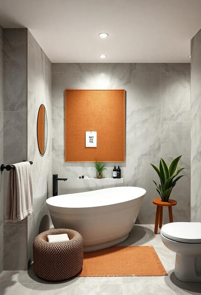 Transform an empty wall in your bathroom into a functional yet stylish message board using cork tiles.These tiles not only add a rustic touch but also allow you to pin notes, reminders, or inspirational quotes. Start by choosing a wall space that catches your eye and measure the area to determine how many cork tiles you’ll need. Once you have your tiles, adhere them to the wall using strong adhesive or decorative push pins, ensuring they are evenly spaced for a clean look.