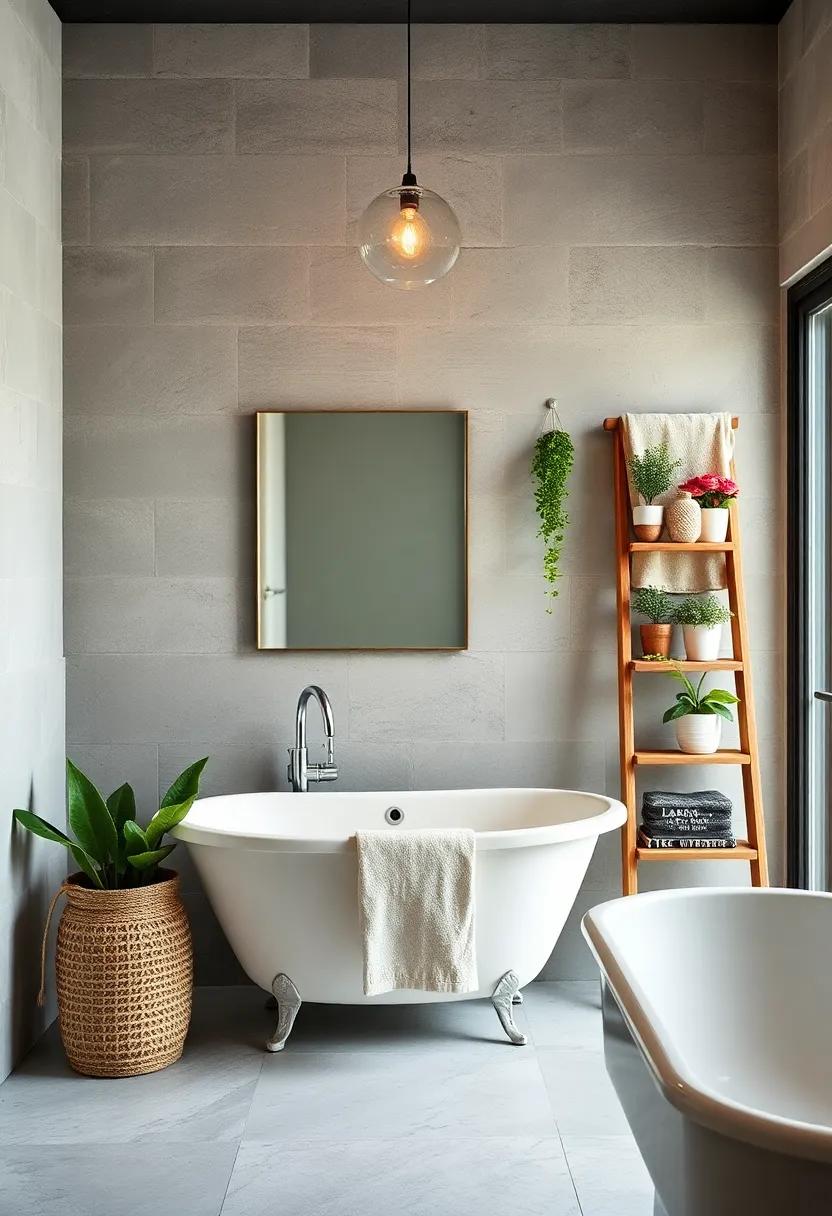 For a bit of extra flair, consider adding decorative baskets to catch smaller items or toiletries that can clutter the countertop. This not only enhances the overall aesthetic but also maintains organization. You can also paint the ladder in a color that complements your bathroom’s palette for a personalized touch.Check out some simple accessory ideas below for further inspiration: