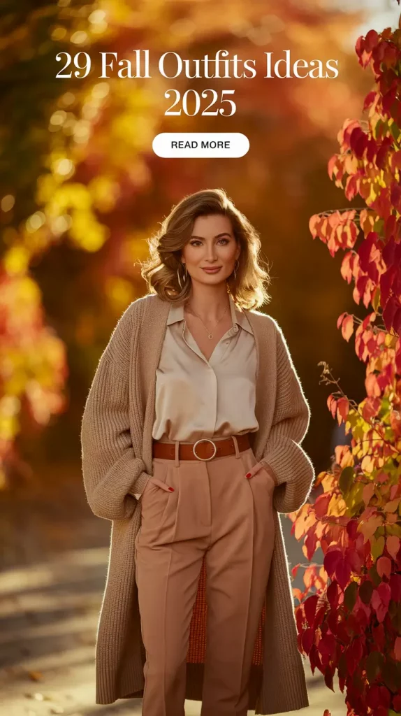 A luxurious oversized sweater like this strikes the ideal balance between plush and refined. Swapping denim for tailored pants enhances the elegance and structure—a classic tip for sophisticated fall styling. These subdued shades flatter all skin tones, creating a serene and cozy visual effect that perfectly aligns with autumn’s softer moods.
