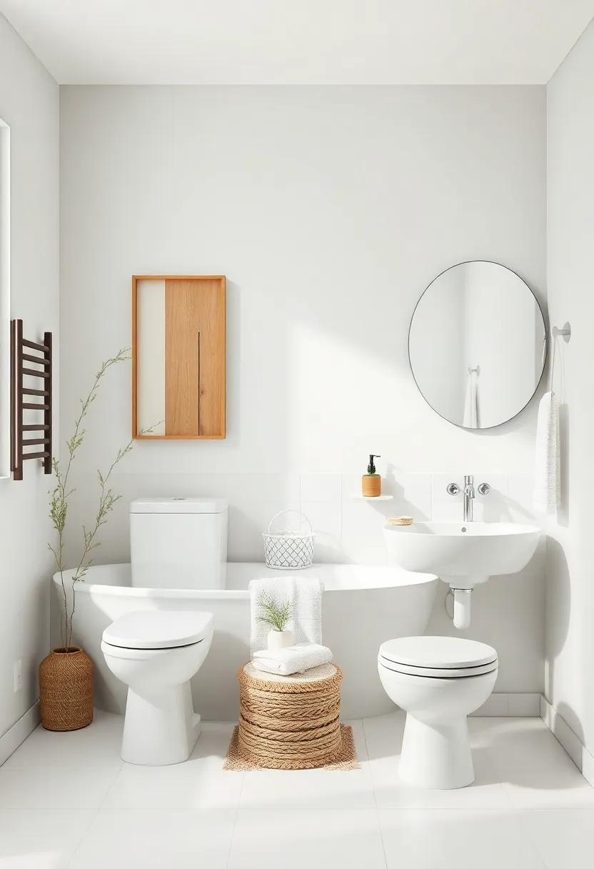 Lighting plays a crucial role in setting the mood. Soft, warm light fixtures or dimmable options can transform the bathroom into a serene space. Additionally, consider incorporating a few essential oil diffusers or calming sound machines to enhance the sensory experience further. For a final touch, choose minimalistic art pieces or wall hangings that evoke tranquility: