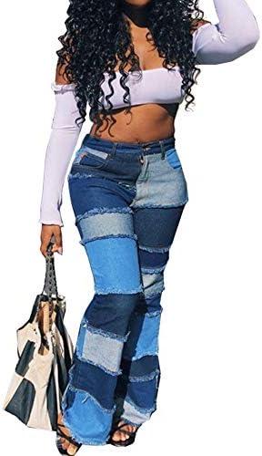 Women’s Stylish High Waist Patchwork Jeans Distressed Hippie Vintage Flared Bell Denim Pants