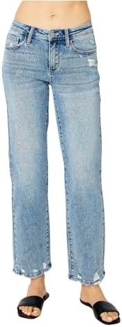 Judy Blue Women’s Mid Rise Medium Wash Distressed Straight Leg Jeans