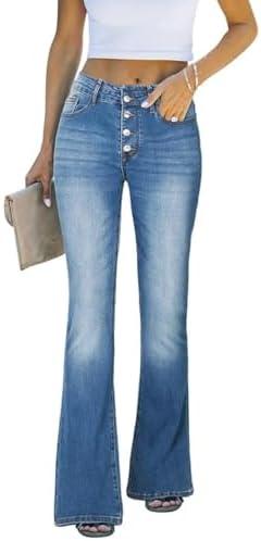 Trendy High Waisted Bell Bottom Jeans with Tummy Control