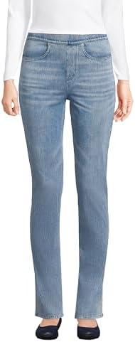 Lands’ End Women’s Starfish Mid Rise Knit Denim Straight Jeans