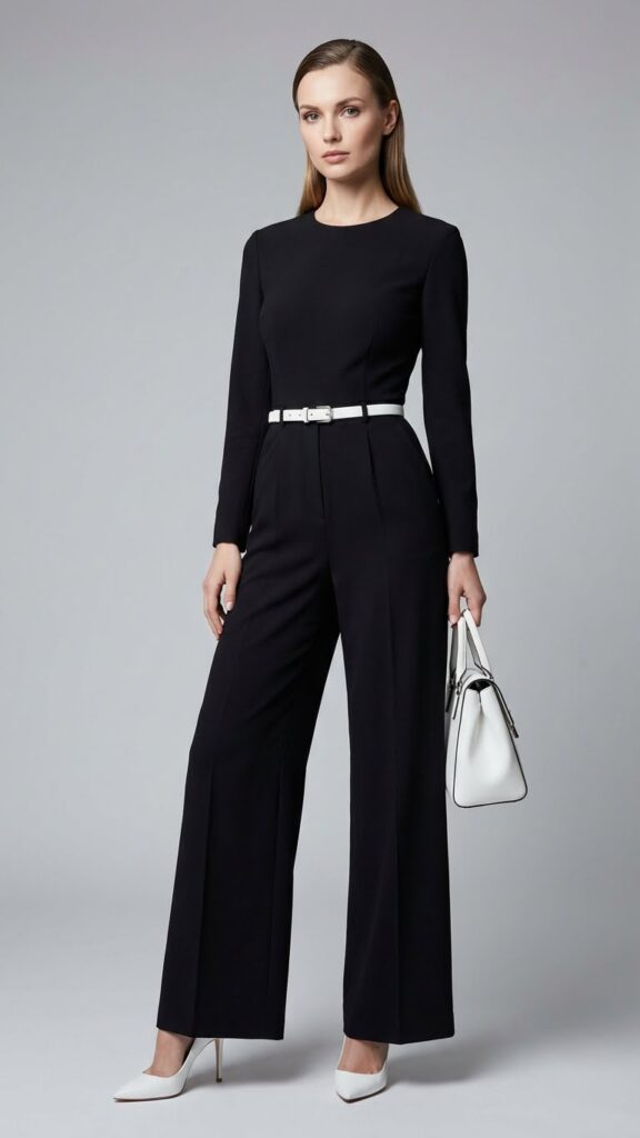 Statement Simplicity: Black Jumpsuit with Crisp White Accents
