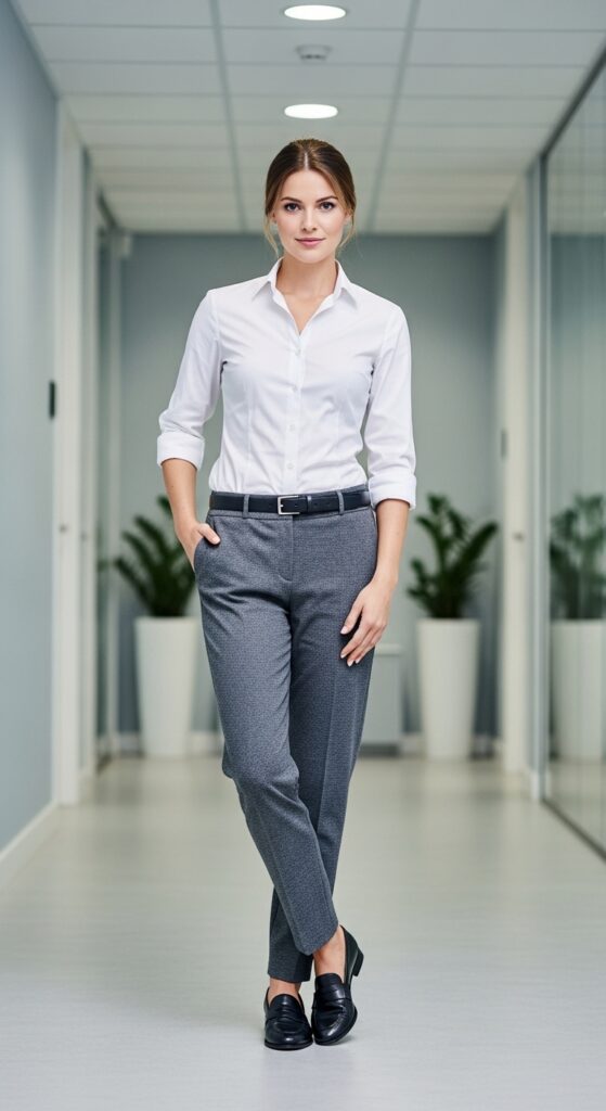 The classic white button-down is a perennial favorite for good reason. When teamed with knit trousers, it instantly elevates your ensemble to polished and purposeful. Whether you style it fully tucked in for clean lines or opt for a half tuck for a casual feel, this pairing never disappoints.