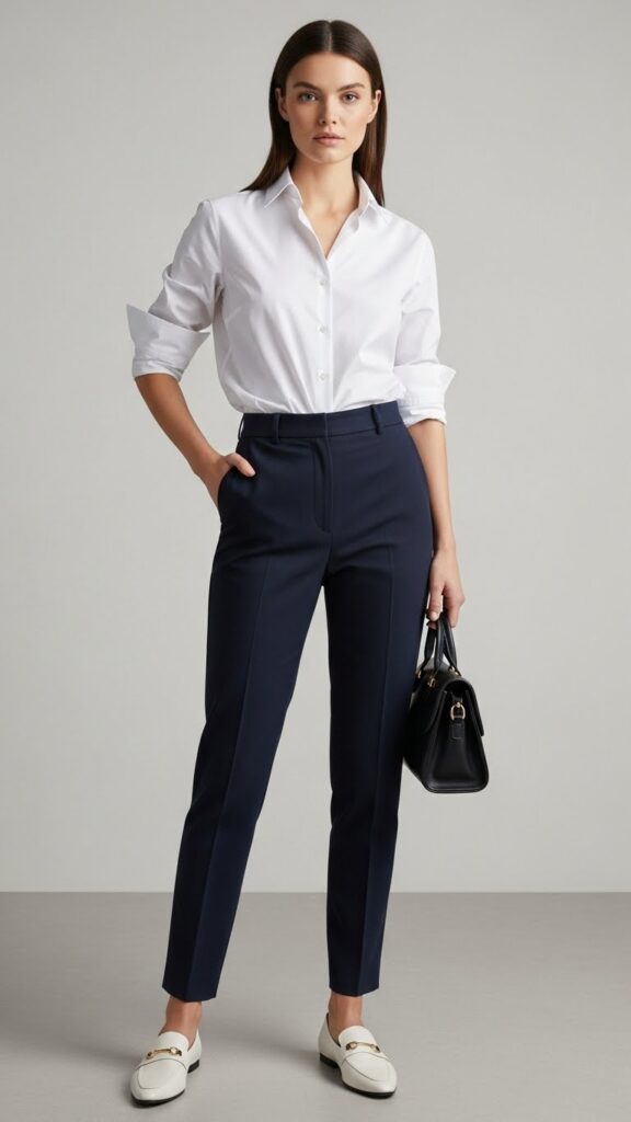 The Timeless Charm of a White Shirt with Tailored Trousers