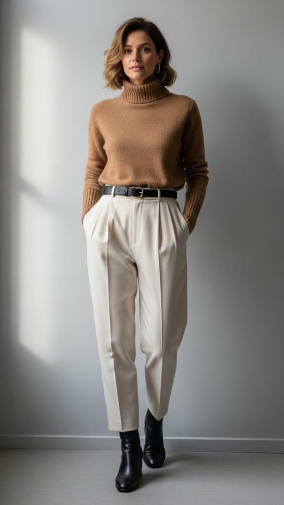 Comfort Meets Class: Turtlenecks with Pleated Pants