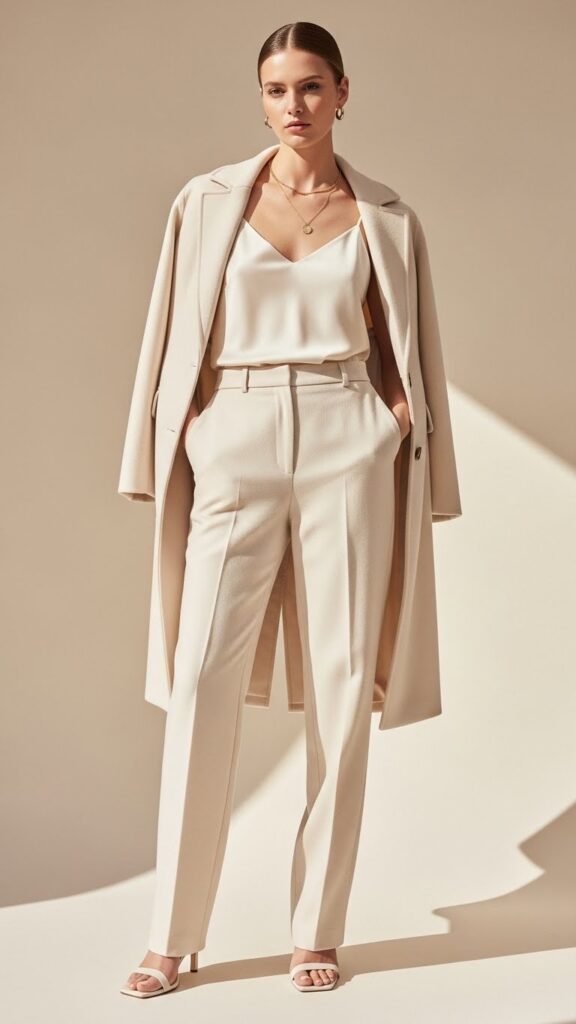 Sometimes the most sophisticated statement you can make is by embracing a single color palette entirely. Wearing head to toe neutral ensembles in shades like cream, taupe, or soft gray instantly evokes luxury without any fuss.