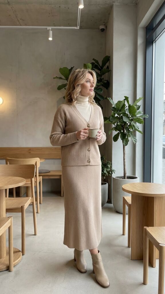 Matching knitwear sets have surged in popularity, and for good reasons—combining coziness with elevated style. Whether it’s a ribbed tank paired with a cardigan or a crop top teamed with a midi knit skirt, these outfits strike a balance between comfort and class. They’re effortless, look luxe, and require minimal styling since they’re designed to complement each other.