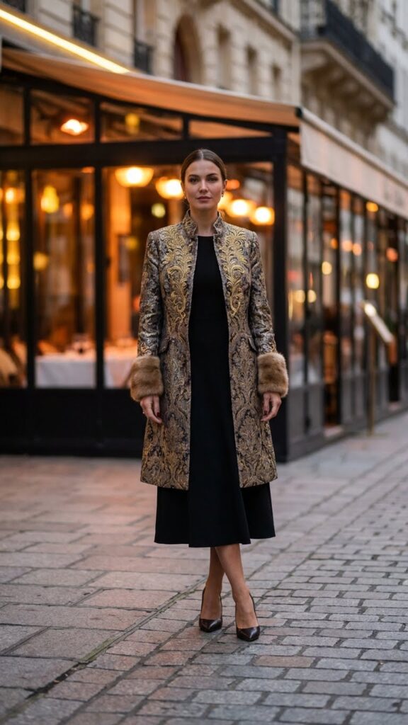 With this tactic, your underlying outfit can remain comfortable and straightforward, while the coat provides that polished finish and immediate style upgrade. Not only does it garner compliments as soon as you arrive, but once you shed it at the table, you’ll still have a solid look beneath—a true wardrobe win.