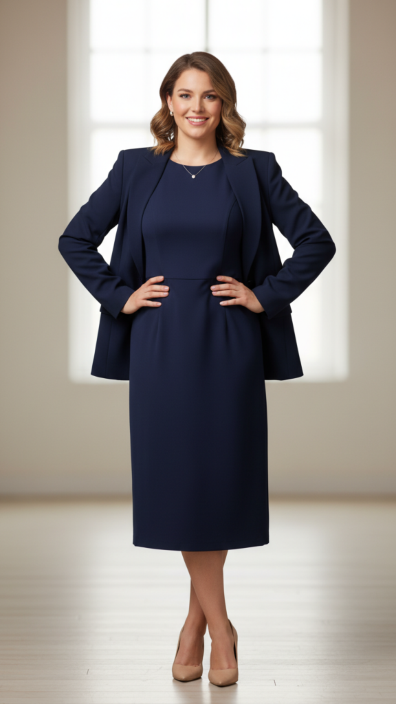 Timeless Midi Dress Combined with a Tailored Blazer