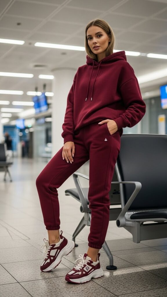 Monochrome outfits are an easy way to appear put-together and polished, no matter how early your flight is. Select a single color—from classic black to neutral beige, crisp white, or even a bold tone like emerald green or crimson—and mix various textures to keep it visually dynamic. For example, combo cotton joggers, a knit pullover, and leather sneakers. Add metallic jewelry or a standout bag for a subtle pop in this cohesive look.