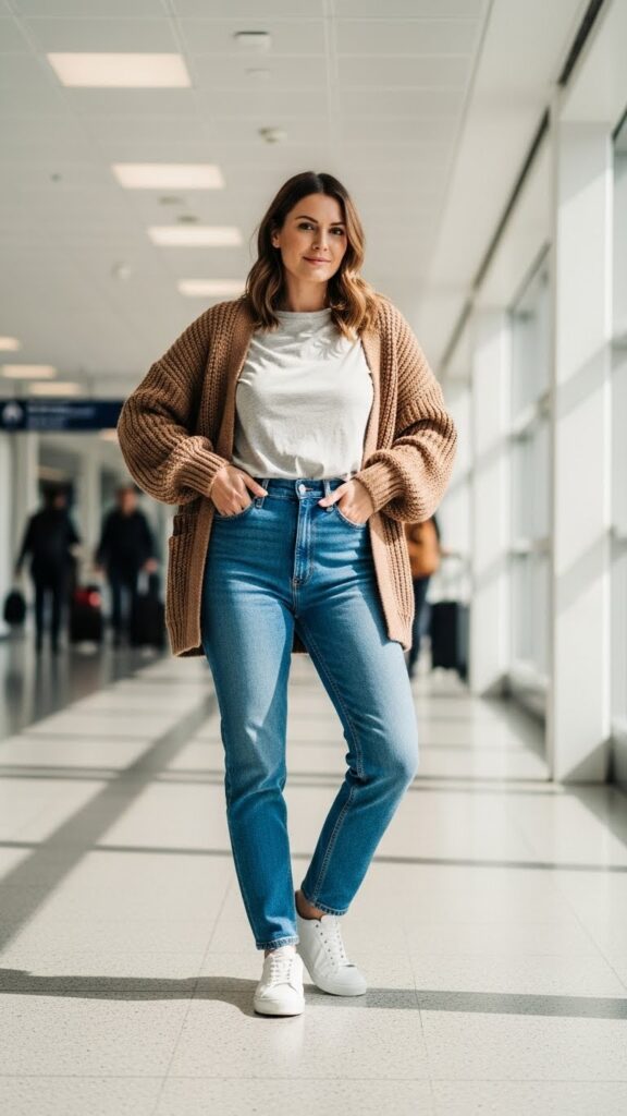 Accessorize minimally with simple jewelry and slip-on shoes. Add a cardigan or denim jacket for extra warmth. This versatile outfit takes you from plane seat to dinner reservation without skipping a beat, often earning compliments wherever you go.