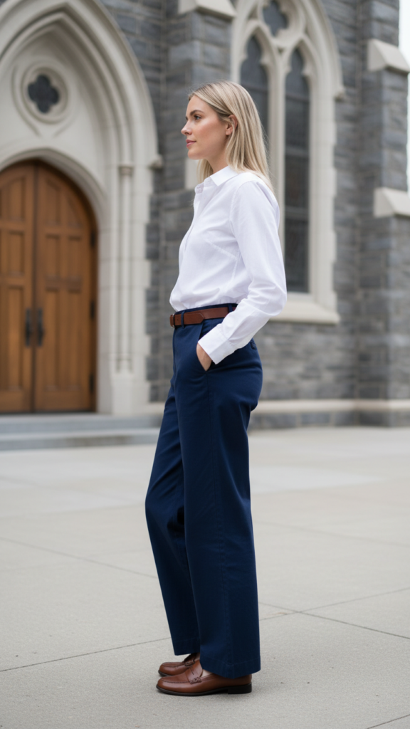 This pairing exemplifies how modern church attire can balance style and comfort while remaining appropriate for any congregation setting.