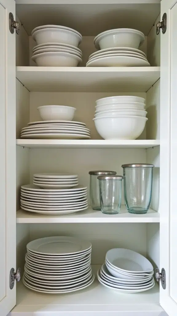 Efficient dish organization revolves around three principles: purpose, frequency, and ease of access. Place your everyday dinnerware—mixing bowls, plates, and mugs—at eye level to reduce time spent searching during meal prep.