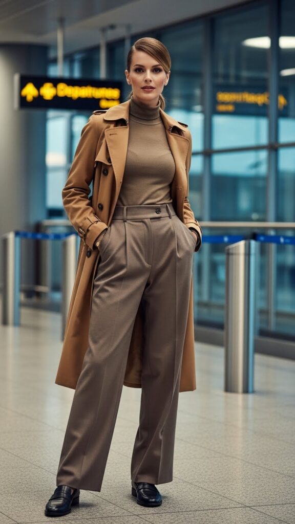 Chelsea boots or loafers polish off this smart-but-cozy look, while a simple crossbody bag frees your hands. Keep a scarf handy for extra warmth on chilly planes. This versatile outfit is a go-to for seasoned travelers aiming to marry style and practicality.