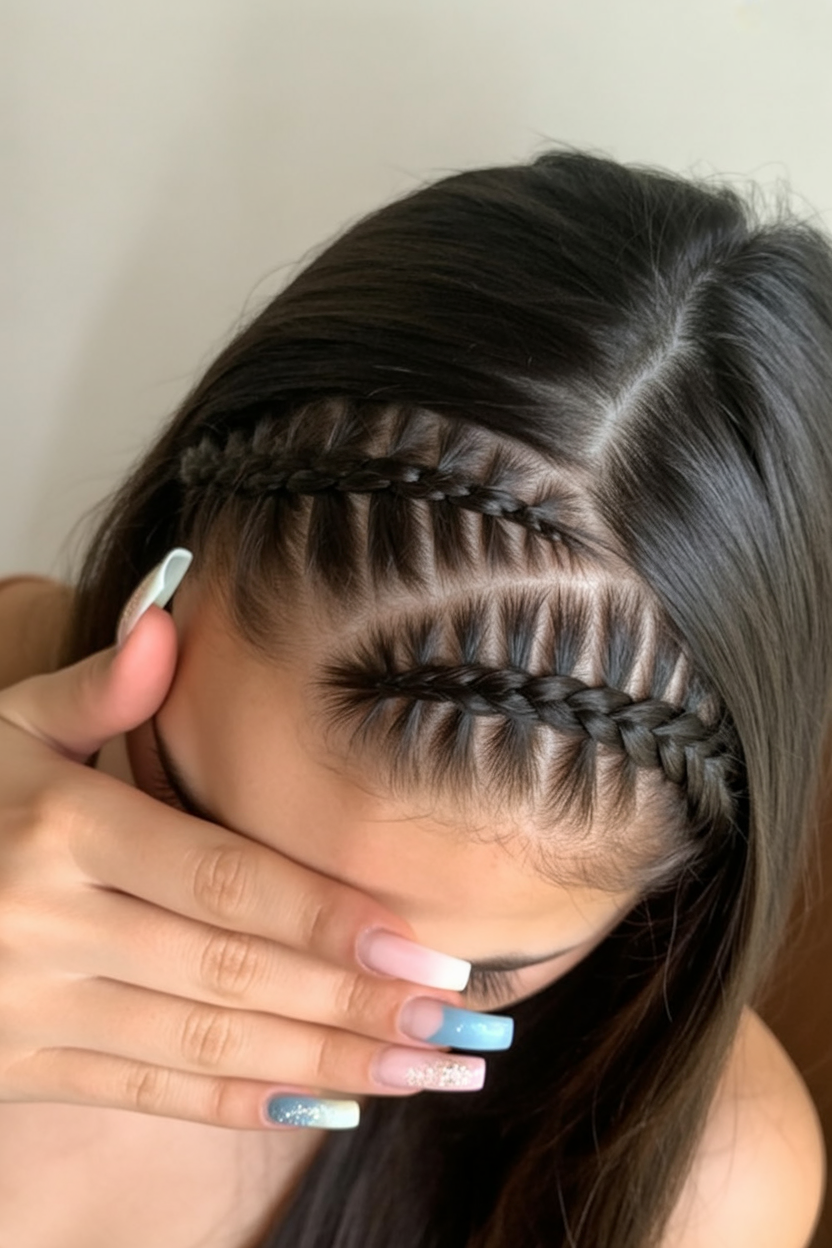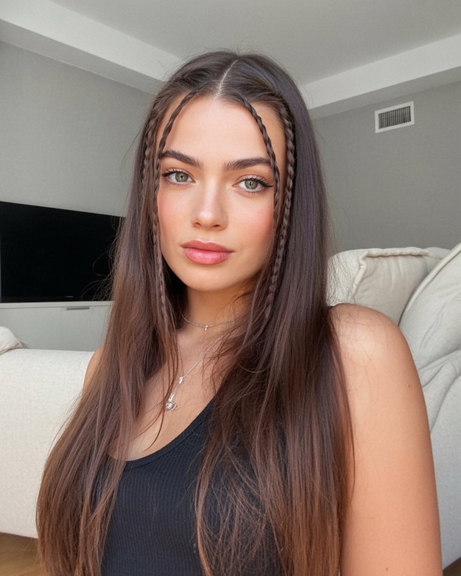Side Braids Flowing into Sleek Straight Lengths