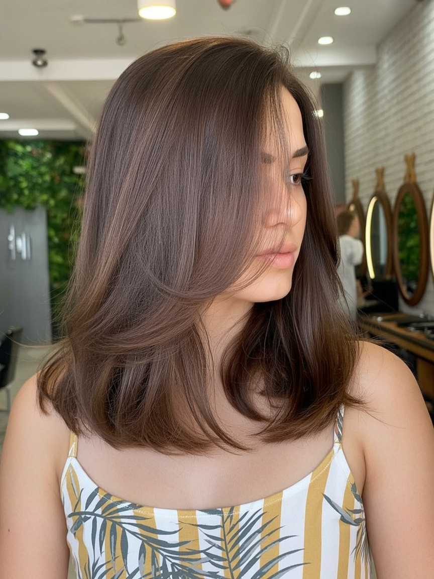 Medium-Length Layers with Side-Swept Bangs for Gentle Glamour
