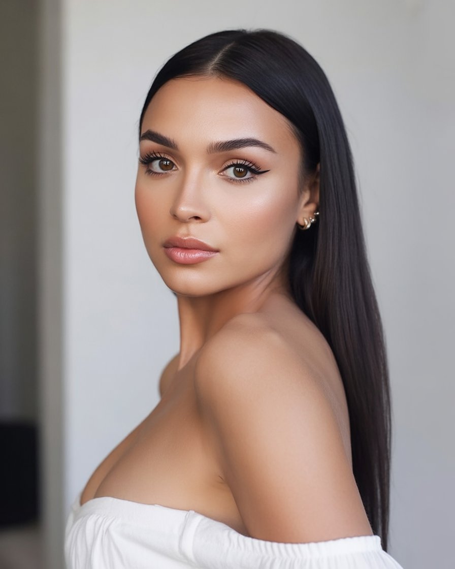 Glossy Center-Parted Sleek Hair for Understated Elegance