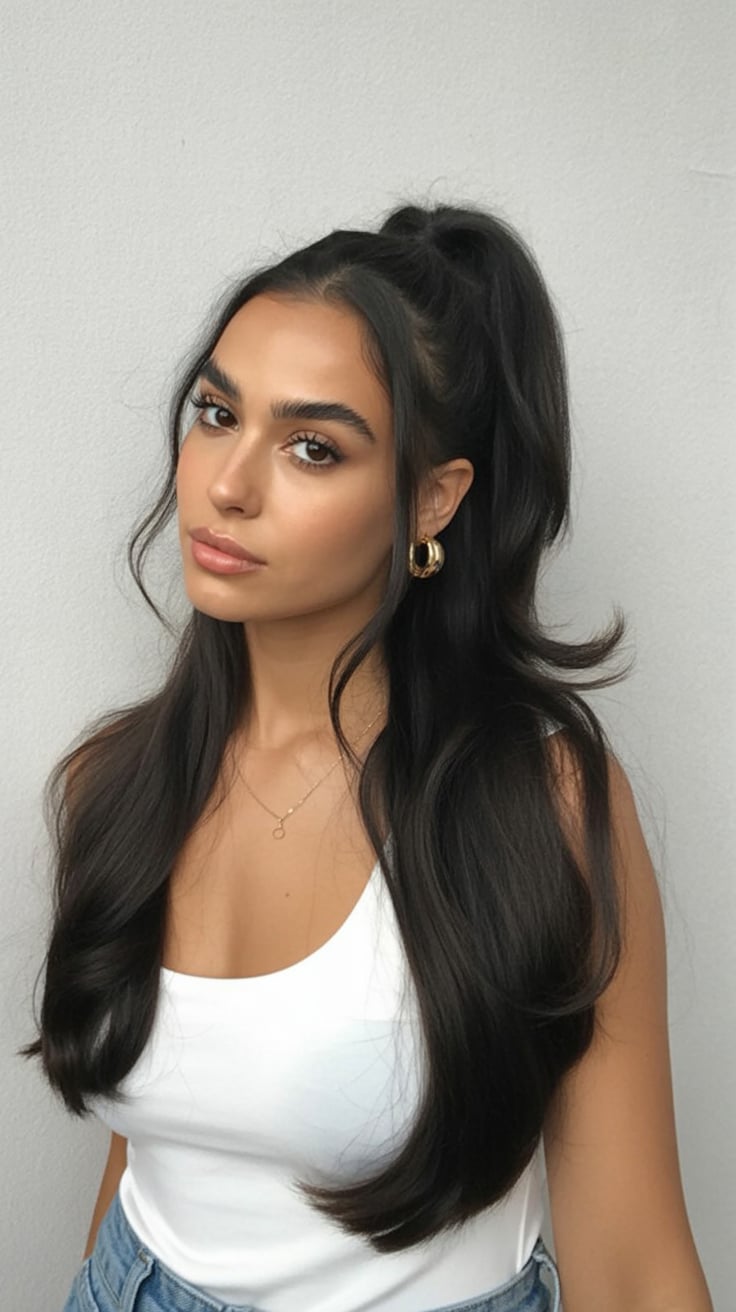 High Half-Up Hairstyle with Sleek, Shiny Lengths