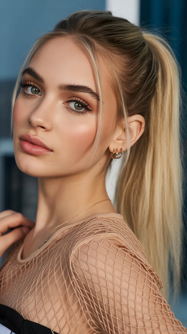 Elevated High Ponytail with Glossy Ends