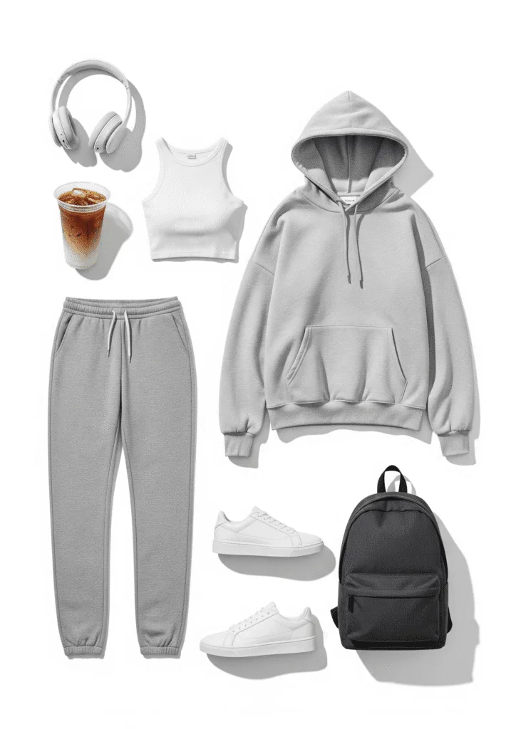 Prepare for long exam days by combining gray joggers with a cropped tank and an oversized hoodie. Accessorize with clean white sneakers and noise-canceling headphones for optimal focus.