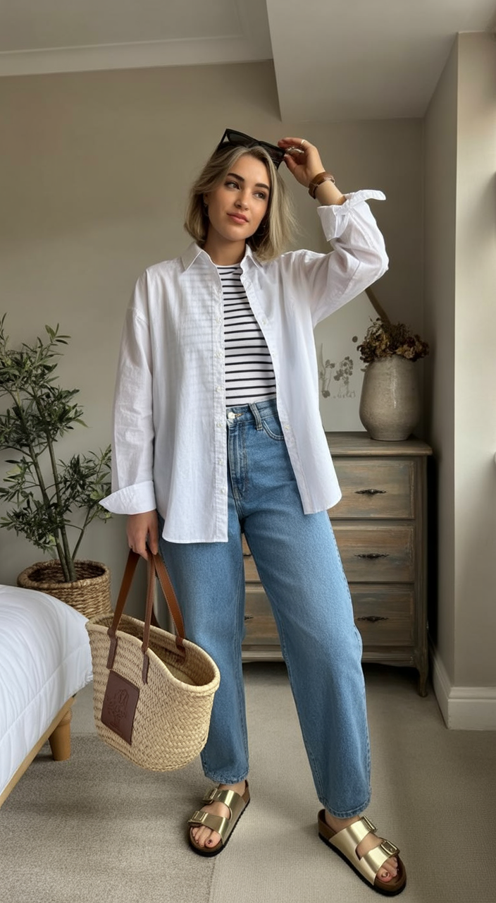 Designed for capsule wardrobes focused on simplicity, this duo suits multiple figures, including plus sizes, thanks to jeans with a straight or loose cut complementing the shirt’s structure. Rolling up sleeves and sliding into flat sandals completes a look that’s casual, enduring, and destined to become a go-to outfit time and again. For a great selection of [white shirts](https://www.amazon.com/s?k=white+shirts&tag=bonofashion-20), explore curated options on Amazon.
