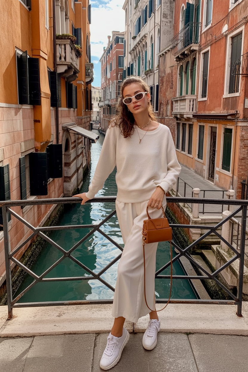 Matching cream-knit sets offer soothing refinement blending modernity and classic charm. Their relaxed yet polished feel exemplifies quiet luxury, presenting a look that feels harmonious and composed.
