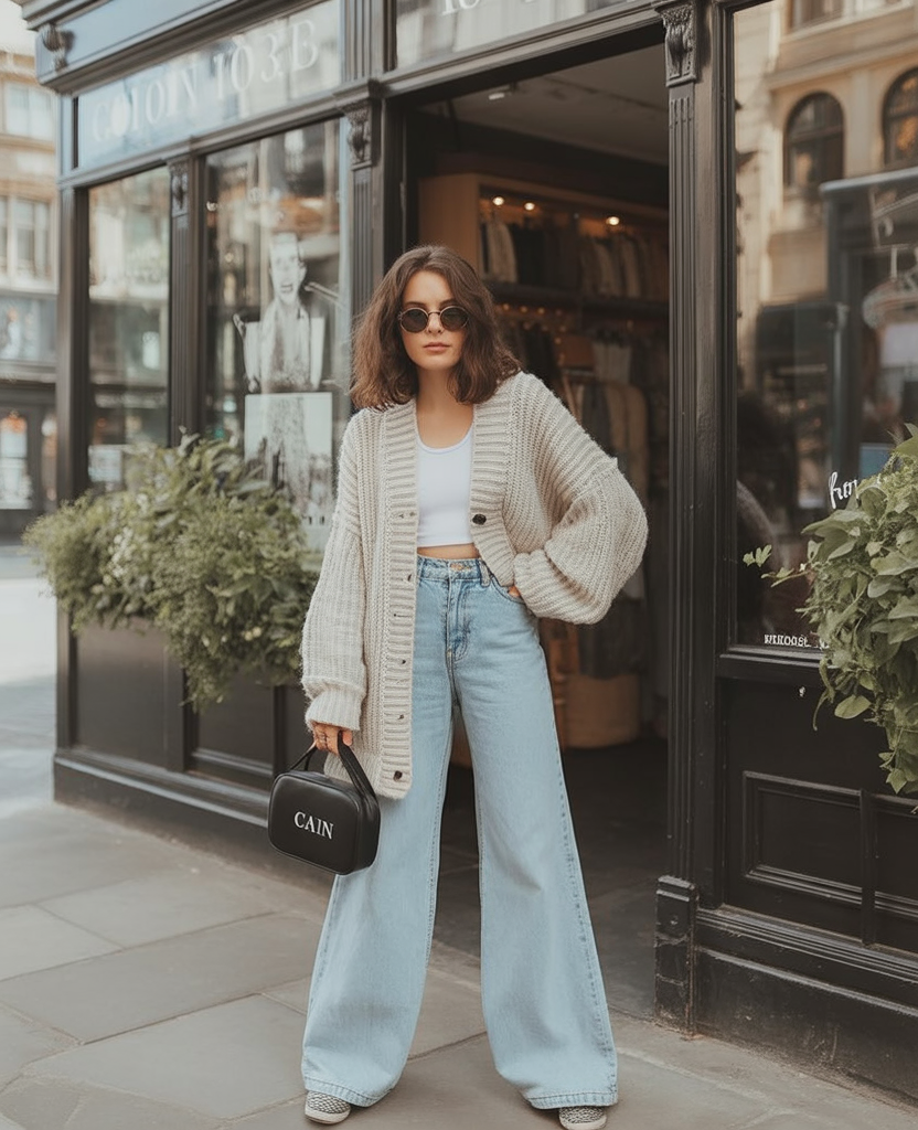 Comfort Meets Style: Cozy Cardigans with Wide-Leg Jeans
